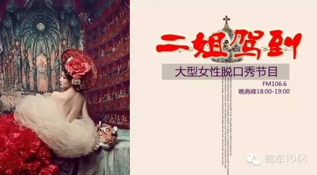 河南電臺(tái)駕車1066是河南電臺(tái)新生的覆蓋全省、針對(duì)駕車人群的廣播頻率,《二姐駕到》是該頻率播出的一檔女性脫口秀節(jié)目。它以女性的視角出發(fā),看世界、說男人、聊情感。節(jié)目風(fēng)格犀利、辛辣,節(jié)目播出后,被男性聽眾戲稱為:《整死男人的一百招》。節(jié)目播出時(shí)間在廣播市場(chǎng)的黃金時(shí)段:下班晚高峰18:00-19:00。節(jié)目通過微信語(yǔ)音、文字的互動(dòng)方式,幫助聽眾解決情感困惑,傾聽更多男人女人的聲音,帶你了解女人,看透男人,是目前鄭州上空同時(shí)段的第一檔女性脫口秀節(jié)目。主持團(tuán)隊(duì)由5名不同年齡段的女性構(gòu)成,她們代表了20歲到40歲不同年齡層次女性的觀點(diǎn),又各自有著鮮明的性格。她們言語(yǔ)辛辣,讓男人們滿頭大汗、女人們拍手稱快!