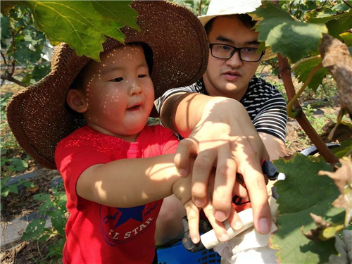 難得的親子互動機會,不僅能讓寶貝了解葡萄是如何生長和采摘的,還能和寶貝來次親密互動~