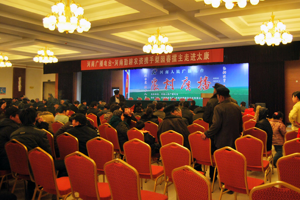 為凈化農(nóng)資市場、保護(hù)農(nóng)民利益、服務(wù)農(nóng)業(yè)生產(chǎn),河南電臺(tái)農(nóng)村廣播成功舉辦——“3.15放心農(nóng)資下鄉(xiāng)進(jìn)村活動(dòng)”。3月14日清晨冒雨趕赴河南省周口市太康縣,邀請(qǐng)省會(huì)相關(guān)職能部門領(lǐng)導(dǎo)現(xiàn)場宣傳科學(xué)種田知識(shí),現(xiàn)場抽獎(jiǎng)為當(dāng)?shù)剞r(nóng)民發(fā)放放心農(nóng)資。并邀請(qǐng)河南勤耕農(nóng)資等企業(yè)、文化界相關(guān)人士帶去精彩的互動(dòng)與節(jié)目演出。戲曲、魔術(shù)、雜技、變臉、抽獎(jiǎng)等穿插互動(dòng)!精彩紛呈!高潮迭起!當(dāng)天從周口各地聞?dòng)嵜坝贲s來的農(nóng)民把活動(dòng)現(xiàn)場擠得水泄不通,鄉(xiāng)親們臉上洋溢著滿意的笑容,雖然天氣驟冷,但現(xiàn)場互動(dòng)把氣氛一次次推向了高潮!在歡聲笑語中,大家不僅對(duì)今年3.15的主題“消費(fèi)與服務(wù)”有了更深層次的理解,而且對(duì)農(nóng)村廣播的“心連心”惠農(nóng)活動(dòng)更加喜愛并充滿期待!