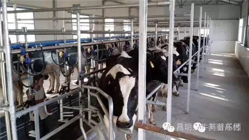 產(chǎn)奶期的奶牛從自己的牛舍成群結(jié)隊(duì)的有序步入擠奶廳,進(jìn)入擠奶廳后,每只奶牛都要先洗澡,然后人工擠掉前三把牛奶,裝好擠奶器,牛奶就從奶牛的體內(nèi)經(jīng)管道直接進(jìn)入冷藏罐了。我們可以站在觀景平臺上,透過高清玻璃,可以清楚的看到擠奶廳內(nèi)奶牛排隊(duì)擠奶的壯觀場景。