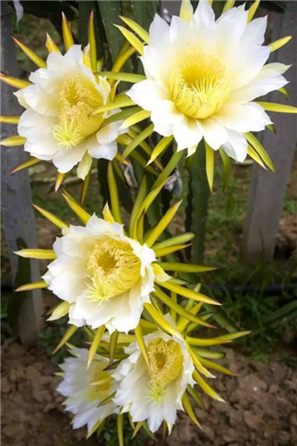 在魯山的氣候條件下,火龍果每年可以開五六次花。每年的5月下旬開始第一批花,7月份第一批果子成熟,一直到春節(jié),每個月都有鮮果成熟。
