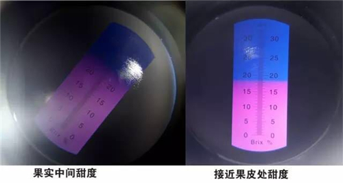 ▼魯山金田地火龍果園區(qū)現(xiàn)場采摘甜度測試