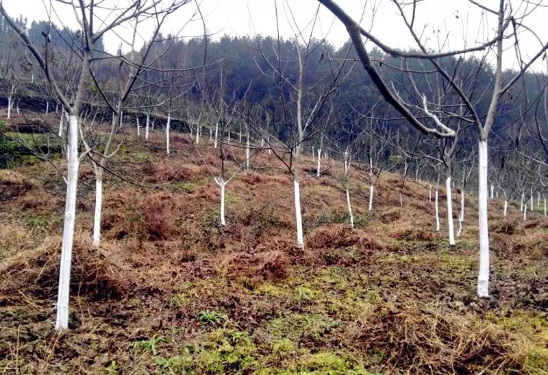 入冬后及時(shí)用涂白劑將核桃樹干和主枝均勻涂刷,使樹體溫度變化穩(wěn)定,不會(huì)有凍凍融融的情況,既防凍、防日灼,又能殺死樹干中的病菌、蟲卵和成蟲,還可有效防止牲畜啃咬樹枝樹皮。涂白在11月中旬進(jìn)行。