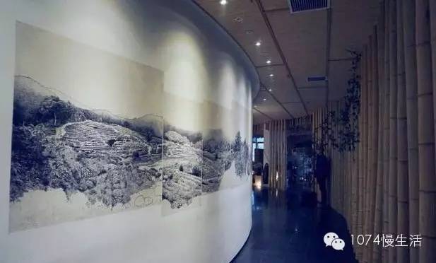 西舍乘電梯而上,卻又是另一番天地。不論是擺放在長(zhǎng)案上,綻放的桃花,還是精致的茶具,都深深將人吸引,長(zhǎng)長(zhǎng)的過(guò)道用竹子裝飾,不禁讓人想到“寧可食無(wú)肉,不可居無(wú)竹”的詩(shī)句,水墨畫也被搬上墻壁,更顯得雅致和店主的巧心思。