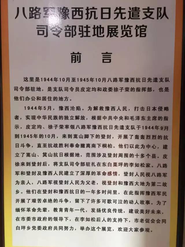 1944年10月1日,以皮定均為司令員,徐子榮為政委的豫西抗日先遣支隊(duì)進(jìn)駐登封白栗坪。翌日,駐登封日軍200多人對(duì)白栗坪抗日根據(jù)地進(jìn)行第一次大掃蕩,殺駐地百姓3人。7日,駐登封日、偽軍300多人對(duì)白栗坪抗日根據(jù)地進(jìn)行第二次掃蕩。13日,駐登封日、偽軍200多人對(duì)白栗坪抗日根據(jù)地進(jìn)行第三次掃蕩。23日,駐登封日、偽、頑300多人對(duì)白栗坪抗日根據(jù)地進(jìn)行第四次掃蕩,皮定均率部突圍。28日,駐登封日軍百余人、偽軍200多人對(duì)白栗坪抗日根據(jù)地進(jìn)行第五次掃蕩。