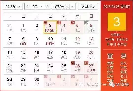 今年九月三日全國放假一天!于是網(wǎng)友們開始腦洞大開,研究起來怎么換休、請假可以達(dá)到本月休假的最大值!其中有網(wǎng)友調(diào)換出最長達(dá)16天之久!!!對的,你沒有看錯,16天,半個月?。?!老板會瘋掉么???