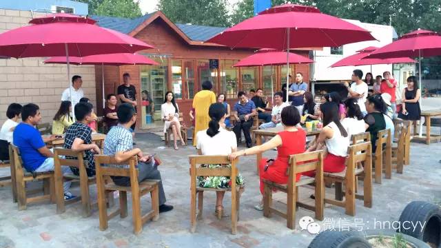 剛到休閑區(qū),大家坐的還比較散,我們單身比較靦腆吶~~~嘿嘿
