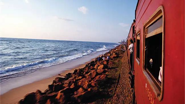 斯里蘭卡的海上火車并不是凌駕于大海之上,它的鐵軌距離海岸線很近,有的地方大概只有一米到兩米的距離,坐在火車?yán)锩?,靠著車窗戶,車窗外面就是一望無際的印度洋,溫暖的海風(fēng)彌漫在車廂內(nèi)。這是那么的美妙與愜意,伴著海風(fēng)的溫柔與味道,火車內(nèi)的乘客感覺到他們所乘坐的火車真的就像開在大海之上一般。