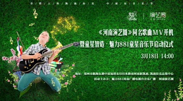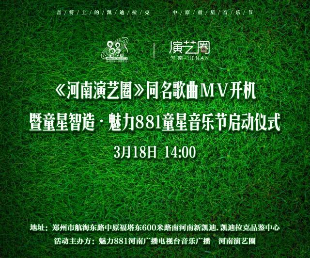 童星智造·魅力881童星音樂節(jié)啟動儀式暨《河南演藝圈》同名歌曲mv開機(jī)將于3月18日下午2點(diǎn)河南新凱迪·凱迪拉克品鑒中心舉行,本次活動由魅力881河南廣播電視臺音樂廣播和河南演藝圈主辦,讓我們一起為本土童星音樂藝術(shù)加油打CALL ?。?!