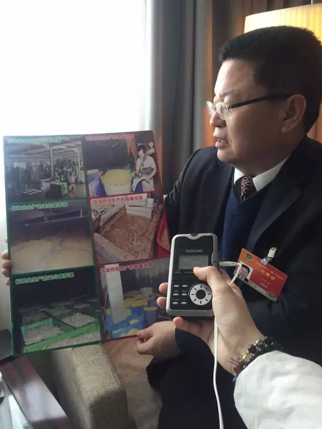 為了發(fā)言更直觀生動(dòng),住豫全國(guó)政協(xié)委員宋豐強(qiáng)會(huì)前專門準(zhǔn)備了“調(diào)研作業(yè)“,介紹各類食品安全問(wèn)題以及有害豆芽生產(chǎn)制作流程的宣傳板。