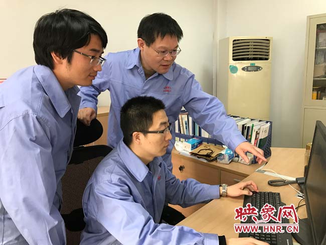 朱新華與同事討論技術(shù)難點