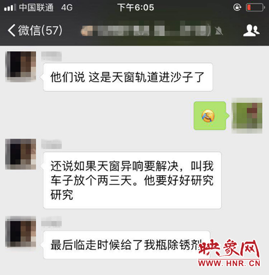 網(wǎng)友的交流內(nèi)容顯示,他們?cè)群蟮礁鞯氐?s店進(jìn)行過維修,除了少部分4s店表示,需要把車子留在店里檢查三四天時(shí)間,其他大部分4s店對(duì)于此類問題的解釋均為天窗出現(xiàn)異物所致,而解決辦法也大致相同——對(duì)天窗軌道進(jìn)行清理和潤(rùn)滑。