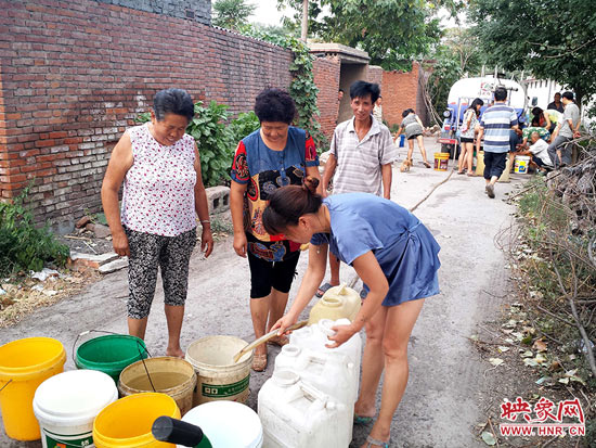 平頂山寶豐縣水利部門(mén)用水罐車(chē)向村民運(yùn)送飲用水