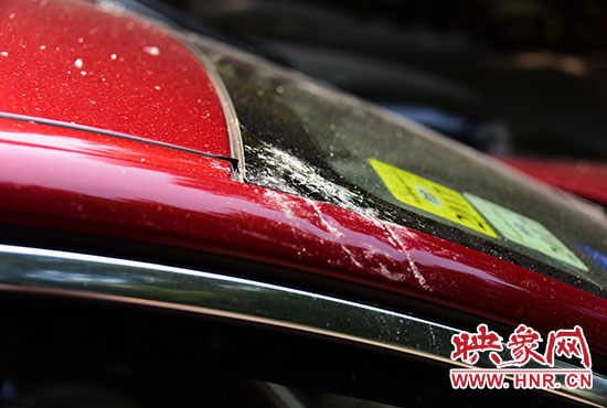 7月3日晚上23時(shí)許,鄭州經(jīng)八路與黃河路交叉口向東200米路北經(jīng)津大廈寫字樓上一大塊玻璃從高空掉落,停放在門面店門口的兩輛轎車無一幸免,其中一輛紅色捷豹車車頂及玻璃以及引擎蓋均被砸穿,車身多處被玻璃渣劃傷;另一輛黑色上海大眾轎車車頂及后玻璃窗被擊中,傷痕累累。
