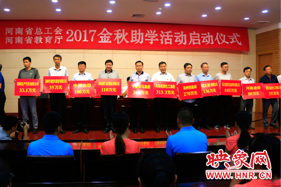 映象網(wǎng)快訊(記者 王寬 實習(xí)生 張璨榮 文/圖)又是一年金秋時,助學(xué)圓夢暖人心。8月16日,河南省總工會、河南省教育廳共同主辦的河南省2017“金秋助學(xué)”活動啟動儀式在鄭州舉行。省委副書記王炯,省人大常委會副主任、省總工會主席王保存,省政府副省長徐濟超,省政協(xié)副主席張廣智出席啟動儀式。