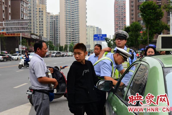 映象網(wǎng)快訊(記者 邱延波 文/圖)9月5日中午12時(shí)許,鄭州市福元路上,一輛電動(dòng)車(chē)疑與出租車(chē)發(fā)生碰撞,電動(dòng)車(chē)上的15歲女生倒地后昏迷不醒。隨后,出租車(chē)離開(kāi)現(xiàn)場(chǎng),熱心市民騎電動(dòng)車(chē)狂追涉嫌肇事的出租車(chē)并將其攔下。