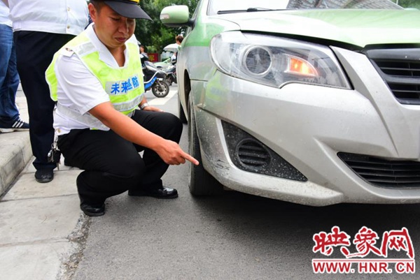 事發(fā)時(shí)路過(guò)此處的華林女士稱(chēng),事發(fā)后,出租車(chē)駛離了現(xiàn)場(chǎng)。一位騎電動(dòng)車(chē)的市民騎電動(dòng)車(chē)在后邊緊緊追趕,在福元路與玉鳳路交叉口將出租車(chē)攔下。剛好,路口有一輛巡邏警車(chē),兩名民警將出租車(chē)司機(jī)帶上了警車(chē)來(lái)到事發(fā)現(xiàn)場(chǎng)。民警將出租車(chē)司機(jī)交給隨后趕來(lái)處理事故的交警,而那名好心的市民卻悄悄離開(kāi)了現(xiàn)場(chǎng)。