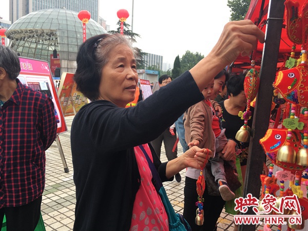 除了小朋友,現(xiàn)場還有很多老人們結(jié)伴在展臺前游逛。今年66歲的趙奶奶就站在一家布藝攤前,為自己身在國外的女兒挑選汽車掛飾。“她一直在國外,我就想給她買個有我們中國元素的東西掛在車里?!?/p>