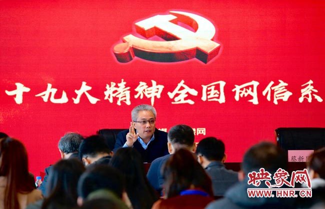 映象網(wǎng)快訊(記者 王邵怡 阮海峰/文 段晉哲/圖)根據(jù)中央網(wǎng)信辦統(tǒng)一部署,11月9日上午,全國網(wǎng)信系統(tǒng)學(xué)習(xí)貫徹黨的十九大精神宣講報(bào)告會(huì)在大象融媒報(bào)告廳隆重舉行,中央網(wǎng)信辦網(wǎng)絡(luò)社會(huì)工作局副局長易滌非作報(bào)告,河南省委網(wǎng)信辦副主任蔡新民主持報(bào)告會(huì)。