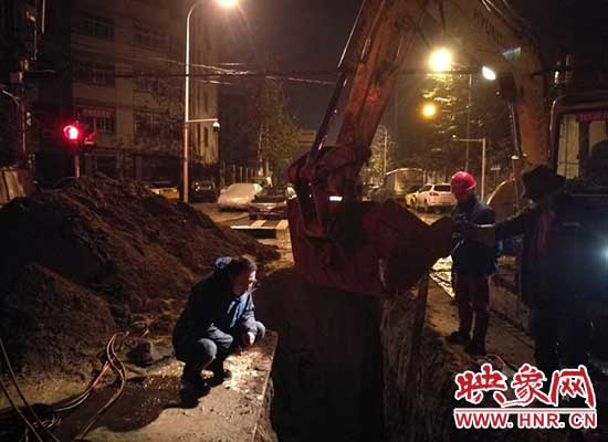 映象網(wǎng)訊(記者 燕子丹 文/圖)“把這四道電纜保護(hù)好,溝底再平整一下,螺栓都擰緊了嗎?下管時(shí)注意避讓雨水、污水管道,千萬(wàn)要小心!”11月9日夜間1:00,鄭州自來(lái)水三強(qiáng)公司第七項(xiàng)目部經(jīng)理孟寶華帶領(lǐng)施工人員加班加點(diǎn)進(jìn)行華山路至昆侖路新舊管網(wǎng)碰通作業(yè),現(xiàn)場(chǎng)機(jī)械轟鳴,人影綽綽,管道碰通工作緊張有序進(jìn)行著。