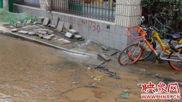 早上6時30分許,未來路辦事處巡防隊(duì)員司廣紅等人發(fā)現(xiàn)居民因小區(qū)積水,出行困難,用磚塊鋪路,方便居民進(jìn)出。由于不明確是自來水管道還是熱力管道發(fā)生了爆裂,巡防隊(duì)員也找不到附近的閥門,只好先撥打鄭州城建服務(wù)熱線12319反映此事。
