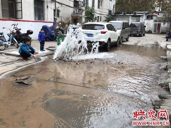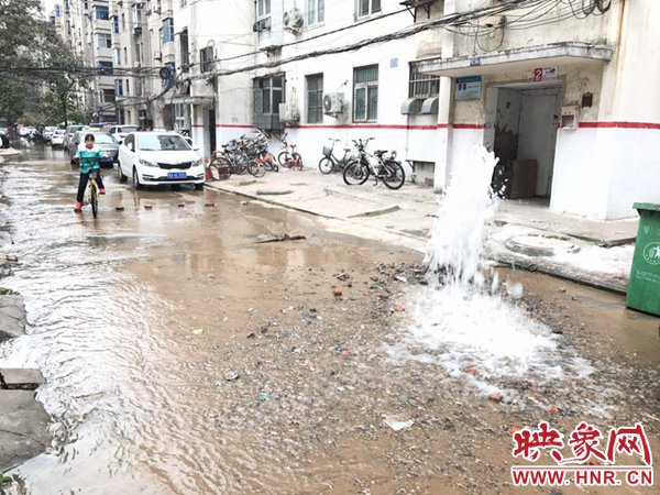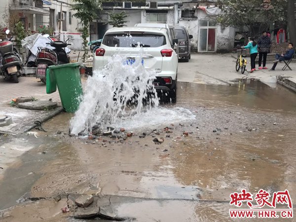 映象網(wǎng)快訊(記者 邱延波 文/圖)11月19日,鄭州桐淮小區(qū)南家屬院19號樓前,因地下自來水主管道爆管導(dǎo)致路面噴出2米多高的“噴泉”,白白浪費(fèi)掉兩三個小時的自來水。一輛轎車壓住閥門井蓋導(dǎo)致無法關(guān)閉閥門,而車主在黃河邊,下午才能回來,工作人員只好把小區(qū)的總閥門關(guān)閉。19日上午9時許,桐柏路汝河路口東南角處的桐淮小區(qū)南院19號樓2門洞前的自來水地下管道爆管現(xiàn)場,小區(qū)水泥路邊爛個洞,噴出高高的水柱,小區(qū)道路上全是積水。