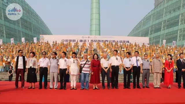 432名專業(yè)演員和票友身穿龍袍同時演唱唐派名劇選段,創(chuàng)造新的吉尼斯世界紀錄。