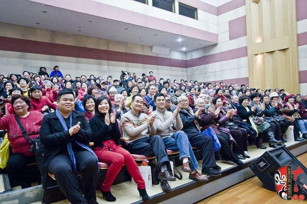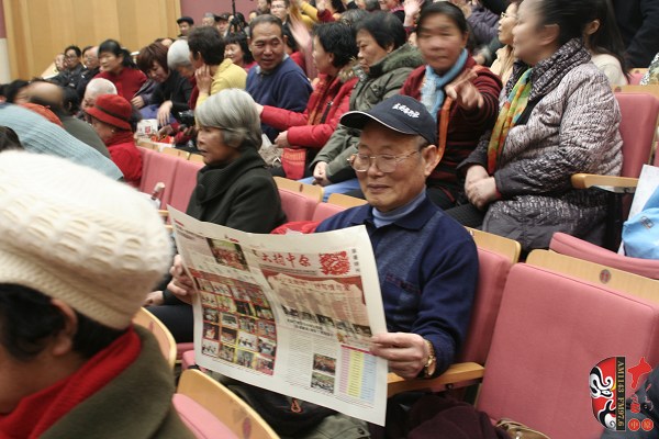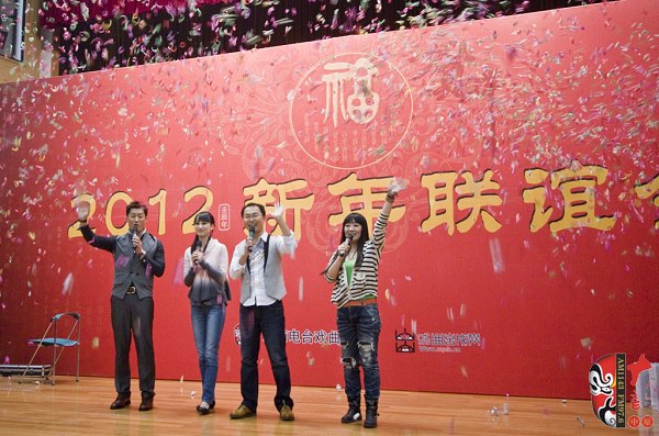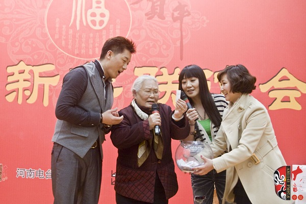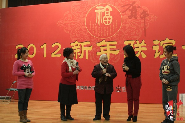 12月28日,一臺由河南藝術(shù)家及戲迷共同參與的新春聯(lián)誼會在河南廣播大廈舉行。本次活動由河南電臺戲曲廣播、戲曲出版網(wǎng)共同舉辦。聯(lián)誼會上,老中青三代名家與戲迷歡聚一堂,氣氛異常熱烈。曾經(jīng)在電影《朝陽溝》中飾演拴保娘的豫劇名家高潔、在電影《扒瓜園》中飾演國英的越調(diào)名家劉琳,中國戲劇梅花獎得主楊帥學(xué)、申小梅,豫劇《朝陽溝》中新一代“拴保”的飾演者盛紅林,為現(xiàn)場熱情的戲迷表演了各自的拿手好戲。藝術(shù)家的精彩演唱博得現(xiàn)場觀眾叫好聲、掌聲不斷,戲曲名家與戲迷共同參與的互動游戲使得本次聯(lián)誼會高潮迭起……當(dāng)豫劇大師馬金鳳的身影出現(xiàn)在大屏幕上時,現(xiàn)場一片安靜。今年90高齡的馬金鳳大師在聽說戲迷聯(lián)誼會舉行的消息后,特別送來了新年的問候和祝福,馬老的祝福視頻播完,激動的戲迷爆發(fā)出一陣熱烈的掌聲……戲迷趙錢孫(網(wǎng)名)專程從北京趕來參加活動,這位小伙子是越調(diào)藝術(shù)的忠實的支持者,2007年他自費創(chuàng)辦了中國越調(diào)網(wǎng),在宣傳和推介越調(diào)劇種方面做出了杰出貢獻。聯(lián)誼會上,他和其他四位越調(diào)戲迷自拉自唱了越調(diào)申派名段《收姜維》中的“四千歲你莫要羞愧難當(dāng)”,博得了現(xiàn)場觀眾的熱情掌聲。85歲的戲迷、著名戲曲活動家劉建勛老師為表達激動的心情,特別為本次聯(lián)誼會寫了一首五言律詩,獻給熱情的戲迷觀眾。 “歲末二十八,大地又回春。戲迷慶元旦,賓客多如云。久別重逢日,相見格外親。你拉我來唱,鄉(xiāng)音暖人心。唱出心坎語,唱出好精神,唱出凌云志,唱響河南人。共同來祝愿:活過一百春!聯(lián)誼會結(jié)束后,很多觀眾意猶未盡,久久不愿離去,他們紛紛與自己喜愛的戲曲名家溝通交流、合影留念。多位戲迷在接受采訪時說:感謝戲曲廣播舉辦了這次聯(lián)誼會,不僅給戲迷提供了交流的平臺,而且拉進了戲迷與名家的距離……(本次活動部分照片由小草提供)