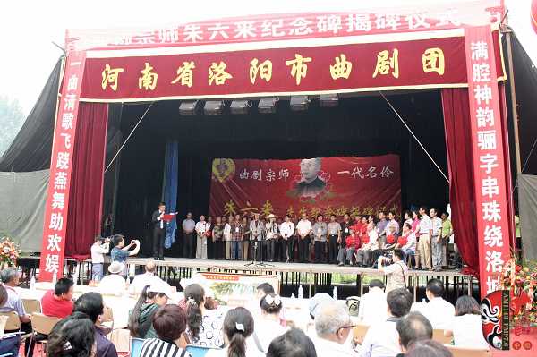 5月9日,由河南省藝術(shù)研究院、省戲劇家協(xié)會、省戲曲表演學(xué)會、洛陽市文廣新局、洛陽市戲劇家協(xié)會、洛陽市曲劇院主辦的,曲劇宗師?一代名伶朱六來先生紀(jì)念碑揭碑儀式在其故里洛陽市關(guān)林鎮(zhèn)大東村舉行。來自省內(nèi)的著名戲劇評論家、劇作家馬紫晨,河南省藝術(shù)研究院院長方可杰,戲劇評論家譚靜波,曲劇老藝術(shù)家劉衛(wèi)生、馬騏、牛長欣、高桂枝、郭鳳娥等,以及各地市兄弟院團代表參加了本次揭碑儀式。同時,著名曲劇表演藝術(shù)家“曲劇泰斗”馬騏,有南牛北馬之稱的南牛著名曲劇表演藝術(shù)家牛長欣,以及各兄弟院團的著名演員獻上了精彩的專場演出。