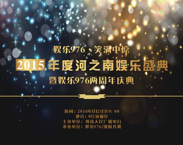 2016年1月21日,8號(hào)演播廳,河之南娛樂盛典2015年度頒獎(jiǎng)典禮娛樂976兩周年慶典即將呈現(xiàn)!