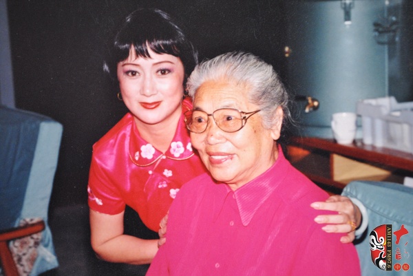 著名京劇演員沈建瑾(右)在給武慧敏(左)比戲