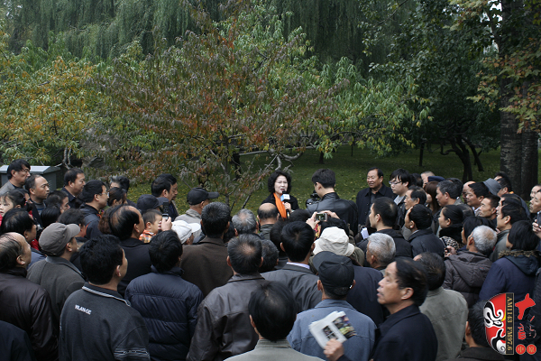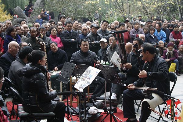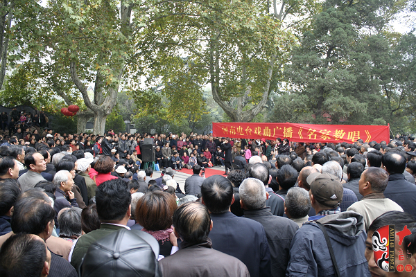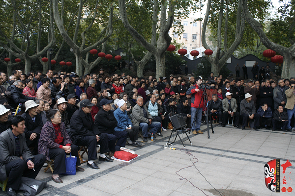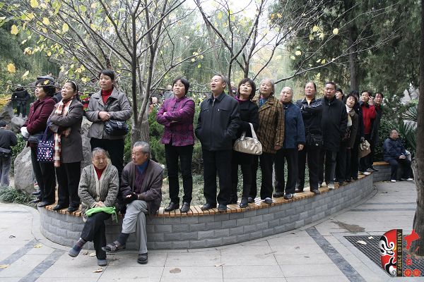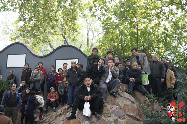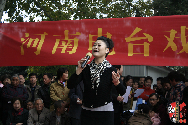 觀眾當(dāng)中,有從廣播中得知消息早早就趕來的戲迷,也有周末游園駐足的市民?;顒釉媱澗劈c半開始,在現(xiàn)場戲迷們的熱情要求下,活動主辦方之一——鄭州梓軒藝術(shù)團的團員們九點剛過便開始了暖場演出。 這是一個由戲迷自發(fā)組織的藝術(shù)團,他們經(jīng)常在公園演唱,為廣大戲迷所熟悉和喜愛,也為豐富群眾的業(yè)余文化生活做出了很大的貢獻。