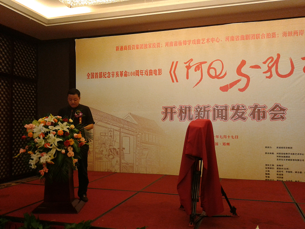 7月17日上午,由新通商投資集團獨家投資、河南省楊帥學(xué)戲曲藝術(shù)中心和河南省曲劇團聯(lián)合拍攝的紀(jì)念辛亥革命100周年戲曲電影《阿Q與孔乙己》開機新聞發(fā)布會在省會鄭州隆重舉行,該片拍攝完成后將在中央電視臺、全國各省、市電視臺和城市院線、農(nóng)村院線以及海外相繼發(fā)行播出。