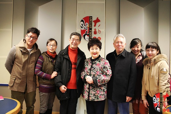 河南電臺戲曲廣播副總監(jiān)張彤(右一)及主持人迎接京劇荀派傳人孫毓敏(左二)、