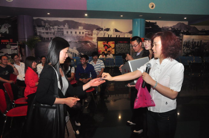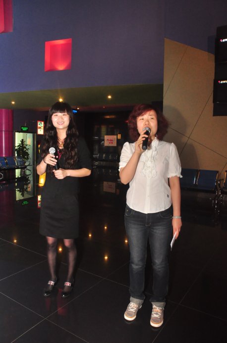 2010年5月8日上午10點,河南電臺旅游廣播FM99.9《故事大秀場》聽友觀影團,在鄭州百盛6樓的鄭州橫店影視電影城如期舉行。美女主持小佩、菲楊聯(lián)袂登場,與聽眾朋友精彩互動,現(xiàn)場有獎問答,鄭州橫店影視電影城也送出了各種精美禮品!互動期間來自安陽的聽眾非常的幸運,獲得了本次活動的大獎,一等獎:精美的純銀情侶對戒;還有2張價值45元的橫店影城貴賓券!大家?guī)е约旱亩Y物和歡聲笑語,與小佩、菲楊一起在位于鄭州百盛廣場六樓的橫店影城電影城觀看了催淚大片《歲月神偷》,這部影片感動了在場的每一位觀眾?;顒幼詈螅课坏綀龅男疫\聽眾還獲得了鄭州橫店影視電影城贈送的寶龍新店“20元現(xiàn)金券”!參與活動的所有聽眾都收獲豐厚,真的是滿載而歸呀!在此特別感謝鄭州橫店影視城對本次活動的大力支持!故事大秀場我秀我飛揚~~~
