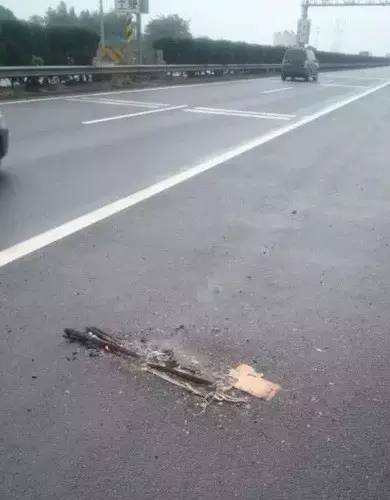 長深高速公路德清往北,十多輛車壓到地面灑落的三角鐵片,全部發(fā)生爆胎。
