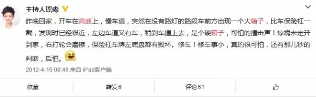 其實(shí)微博上關(guān)于高速公路上撞上紙箱子的事件,屢次發(fā)生: