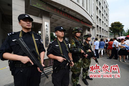 鄭州警方根據(jù)全市考區(qū)的實(shí)際情況進(jìn)行了警力部署:市內(nèi)每個(gè)考點(diǎn)安排轄區(qū)派出所民警6名、交巡警6名、特警4名;上街、中牟、滎陽、新鄭、新密、登封每個(gè)考點(diǎn)安排執(zhí)勤民警16名,其中:派出所民警6名、交警6名、特警4名。為全力服務(wù)考生,鄭州警方要求各單位執(zhí)勤民警在開考前1個(gè)小時(shí)到達(dá)指定崗位,認(rèn)真履行各項(xiàng)職責(zé),考試結(jié)束40分鐘后撤崗。對位于繁華路段、周邊治安復(fù)雜或交通擁堵路段的學(xué)校有針對性的增派警力,切實(shí)加強(qiáng)考點(diǎn)及周邊安全保衛(wèi)工作。