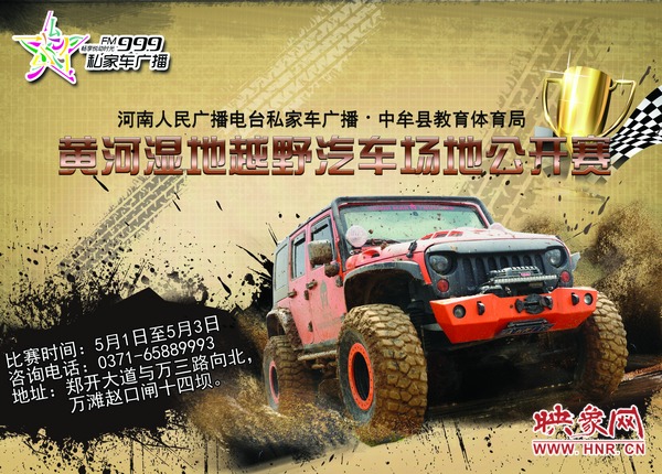 私家車999“2015黃河濕地越野挑戰(zhàn)賽”將在五一黃金期火爆來(lái)襲,華中地區(qū)最大的越野賽事,國(guó)內(nèi)外知名車手現(xiàn)場(chǎng)挑戰(zhàn)4.5公里泥濘坎坷賽道,驚險(xiǎn)刺激的比賽等著你!