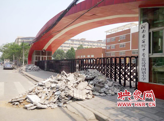 25日下午,映象網(wǎng)記者來(lái)到河南省實(shí)驗(yàn)中學(xué)思達(dá)外國(guó)語(yǔ)小學(xué)門(mén)口發(fā)現(xiàn),前幾天已經(jīng)清理干凈的校門(mén)口再次被建筑垃圾所包圍。