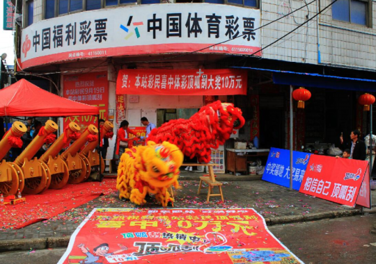 當(dāng)天下午,雖然下過小雨,但銷售網(wǎng)點門前仍然是人滿為患,好不熱鬧。聽說銷售點中了大獎,很多附近的彩民都來圍觀“中獎福地”,業(yè)主張女士還專門請來了兩組舞獅隊進行即興表演,一時間現(xiàn)場氣氛達到頂點,據(jù)張女士說,自從她的銷售站出了大獎,慕名而來“沾喜氣”的彩民很多,大家都是試試手氣隨手刮上一兩張頂呱刮彩票。