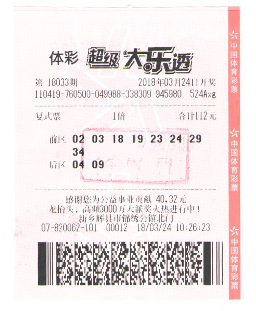 [摘要] 3月24日晚,大樂透第2018033期開獎,全國共中出9注頭獎,其中,河南彩民郝先生以一張“8+2”復(fù)式票擒獲大樂透一等獎1注