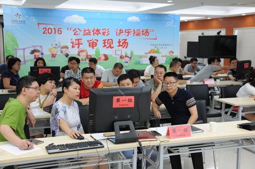 評審工作分四組進(jìn)行,每組評審人員首先對報(bào)名學(xué)校提供的基本情況進(jìn)行逐項(xiàng)了解,同時(shí),通過學(xué)校提供的校園、現(xiàn)有操場、器材室等實(shí)景照片,對是否提供捐贈(zèng)進(jìn)行綜合打分。最后由工作人員對每組評委的打分進(jìn)行匯總,按照每所學(xué)校得分高低進(jìn)行排序,前25名的學(xué)校入圍2016“公益體彩 快樂操場”(河南)實(shí)地考察名單。