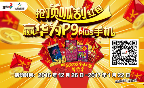 [摘要] 買(mǎi)體彩頂呱刮還可以搶4999元現(xiàn)金大紅包?還能贏取華為P9plus手機(jī)?