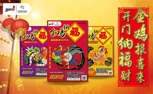 每逢歲末年初,頂呱刮都會(huì)推出賀歲票,今年也不例外,雞年賀歲票“金雞納福”提前與彩民們見(jiàn)面了。該票有紅、紫、黃三款,以寓意吉祥如意的錦雞為主題,絢麗的色彩中透露出濃濃的中國(guó)風(fēng)。單張面值10元,有12次中獎(jiǎng)機(jī)會(huì),最高獎(jiǎng)金30萬(wàn)元,游戲形式為:刮開(kāi)覆蓋膜,在任意一場(chǎng)游戲中如果出現(xiàn)兩個(gè)相同的“雞”標(biāo)志,即中得該場(chǎng)游戲右方所示的金額;如果出現(xiàn)“福”標(biāo)志,即中得該場(chǎng)游戲右方所示金額的兩倍。