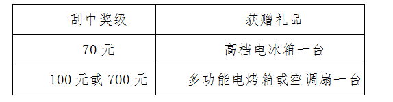 活動(dòng)時(shí)間:2017年7月8日至2017年7月28日。活動(dòng)期間,彩民在我省任一體彩銷售網(wǎng)點(diǎn)購買20元面值“7”主題即開票,單張彩票刮中70元、100元或700元獎(jiǎng)級(jí),并經(jīng)兌獎(jiǎng)設(shè)備(IVT或BCR)完成兌獎(jiǎng)且剪角處理后,除正常兌付獎(jiǎng)金外,另可獲得精美禮品一份,彩民多中多獎(jiǎng),數(shù)量不限!詳見下表: