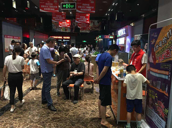 7月底,《戰(zhàn)狼2》一經(jīng)放映,票房即屢創(chuàng)新高,人們都紛紛到電影院觀賞這部精彩的電影。經(jīng)常在鄭州西郊電影院看電影的人們,會(huì)發(fā)現(xiàn)很多電影院入口處多了一個(gè)新柜臺(tái),體彩“頂呱刮”銷售專用柜臺(tái)。銷售桌醒目的顏色、展柜內(nèi)齊全的票種、各色禮品吸引了人們的目光。等待入場(chǎng)的人們紛紛來(lái)到銷售桌周圍,了解頂呱刮的玩法,并開(kāi)始在“頂呱刮”票種里尋寶。