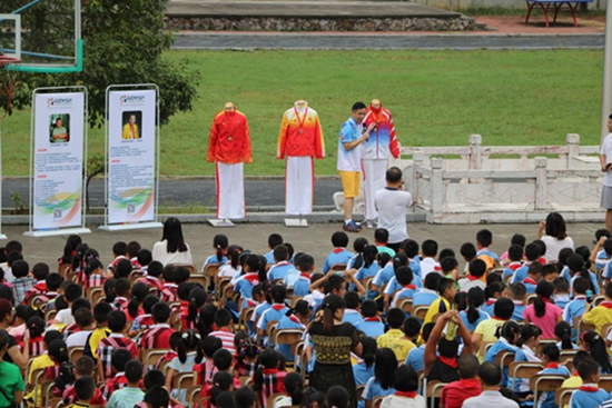 在建設(shè)美麗鄉(xiāng)村的社會(huì)背景下,“冠軍課堂”鄉(xiāng)村行是廣東省體彩中心、廣東省青少年體育聯(lián)合會(huì)對(duì)“公益體彩·快樂(lè)操場(chǎng)”活動(dòng)的延伸,由國(guó)家級(jí)跳水教練、奧運(yùn)冠軍教練胡恩勇帶領(lǐng)世界冠軍及優(yōu)秀運(yùn)動(dòng)員,歷時(shí)4個(gè)月,走進(jìn)9地市的25 所山區(qū)中小學(xué)校,為那里的師生帶去體育器材,上一堂公益體育課,部分優(yōu)秀運(yùn)動(dòng)員還會(huì)在受助學(xué)校支教半年。活動(dòng)為孩子們樹(shù)立了“愛(ài)運(yùn)動(dòng),強(qiáng)體魄”的觀念,讓缺少體育器材和專業(yè)體育教師的孩子們都能“每天快樂(lè)運(yùn)動(dòng)一小時(shí)”。