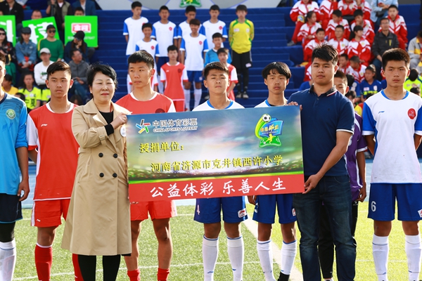 在此次活動最后,寧夏體彩中心主任祁春霞向河南省濟(jì)源市克井鎮(zhèn)西許小學(xué)進(jìn)行捐贈。她寄語道,希望通過體彩公益金可以讓更多的青少年圓自己的足球夢,也讓更多的優(yōu)秀足球苗子涌現(xiàn)在華夏大地,撐起中國足球未來的脊梁。(張航)