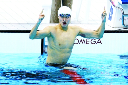 一記揮拳,一聲大吼,400米自由泳,孫楊破奧運紀錄奪冠。
